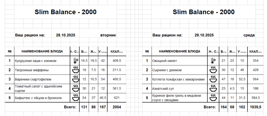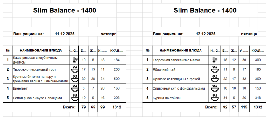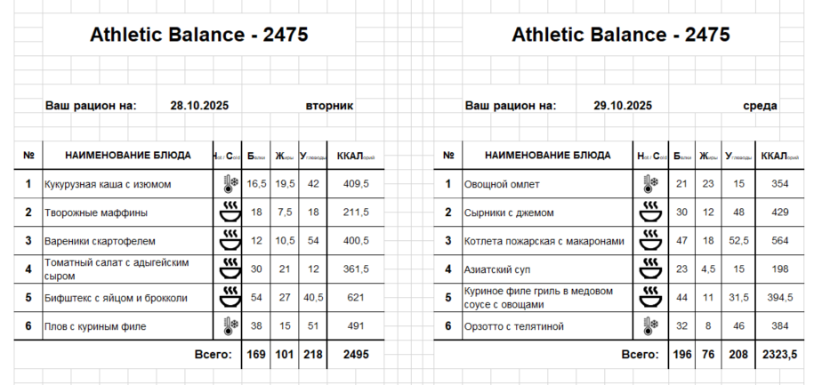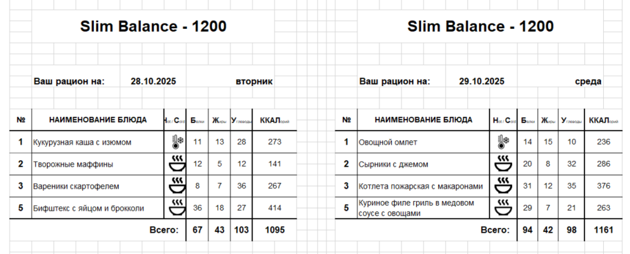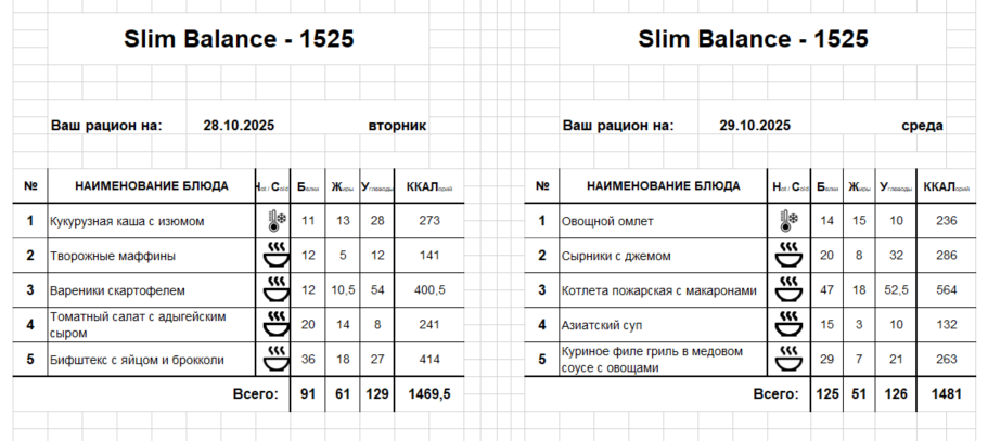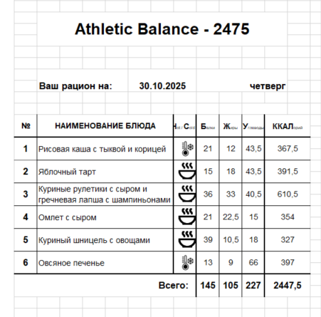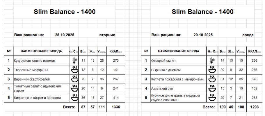 Актуальное меню