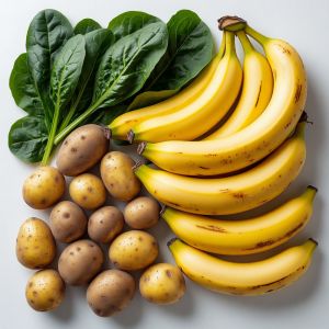 Картофель рекомендуется запекать в кожуре, так как именно в ней содержится большое количество калия: в одной небольшой картофелине примерно 610 мг. Если в рацион не добавлять соль, будет меньше съедаться хлорида натрия. Особенно вредно для здоровья соленая картошка фри, так как она жарится в большом количестве растительного жира. В зависимости от места выращивания картофель содержит разное количество калия.