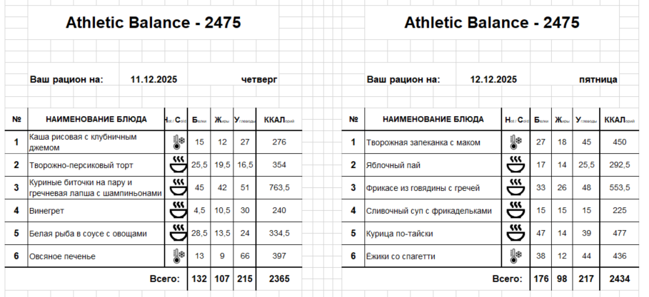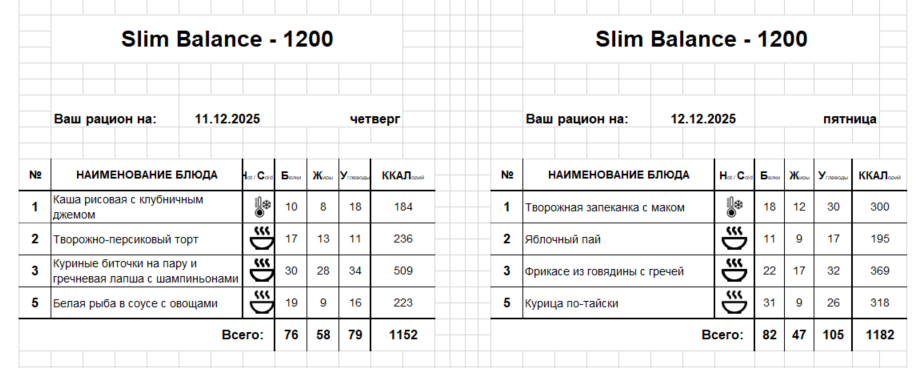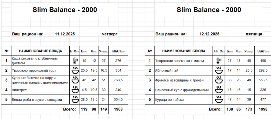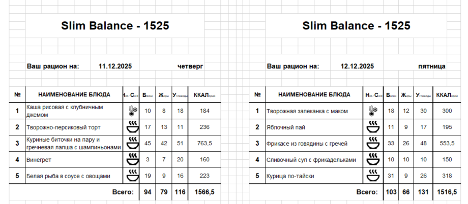 Актуальное меню